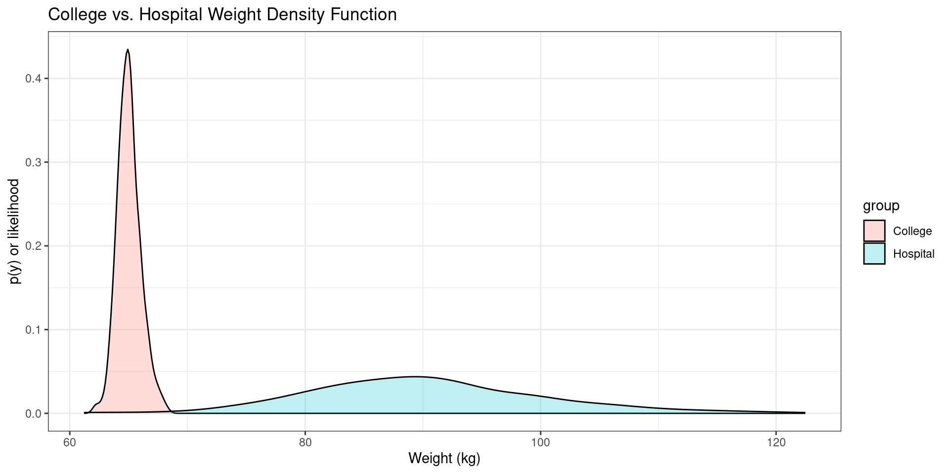 labs(title = "College and Hospital Weight Density Function") +